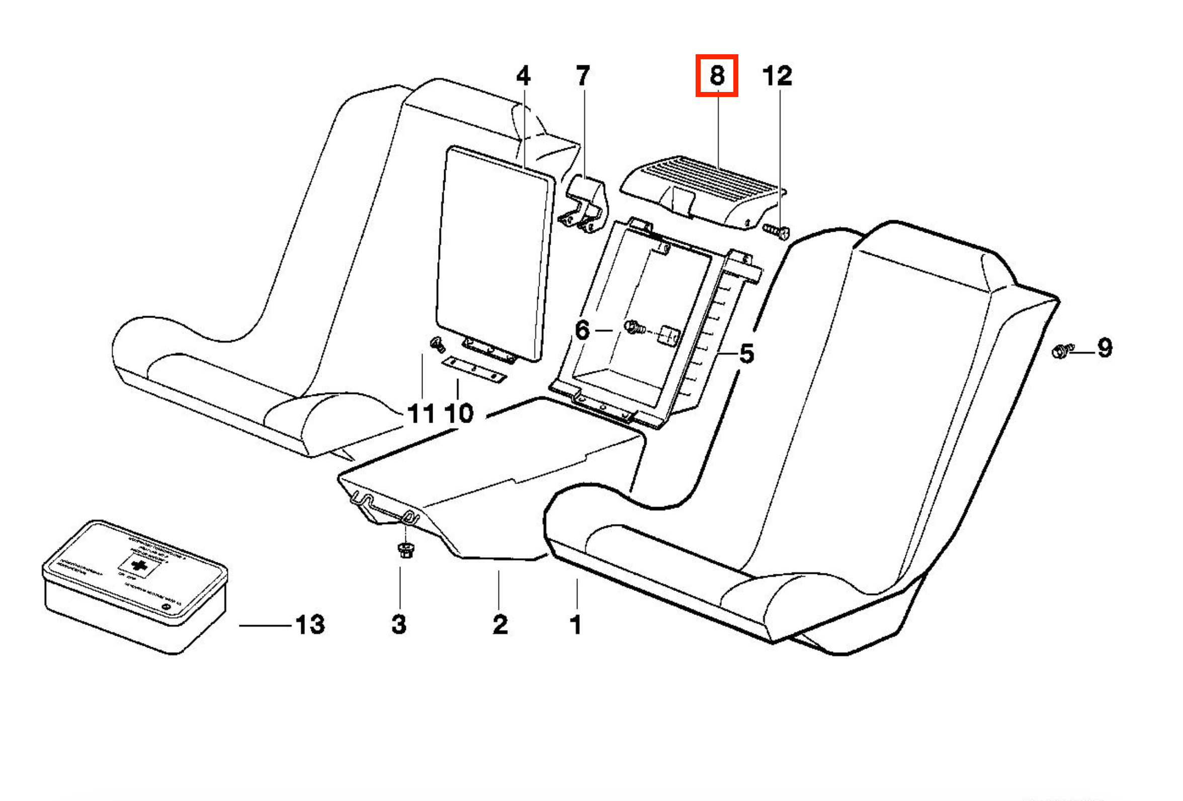 BMW E31 850 840i Rear First Aid Kit Cover Trim 52208124645