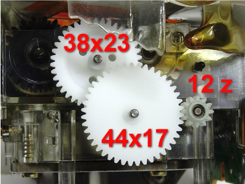 - Second Gear: Diameter: 22.8mm; Teeth: 44x17