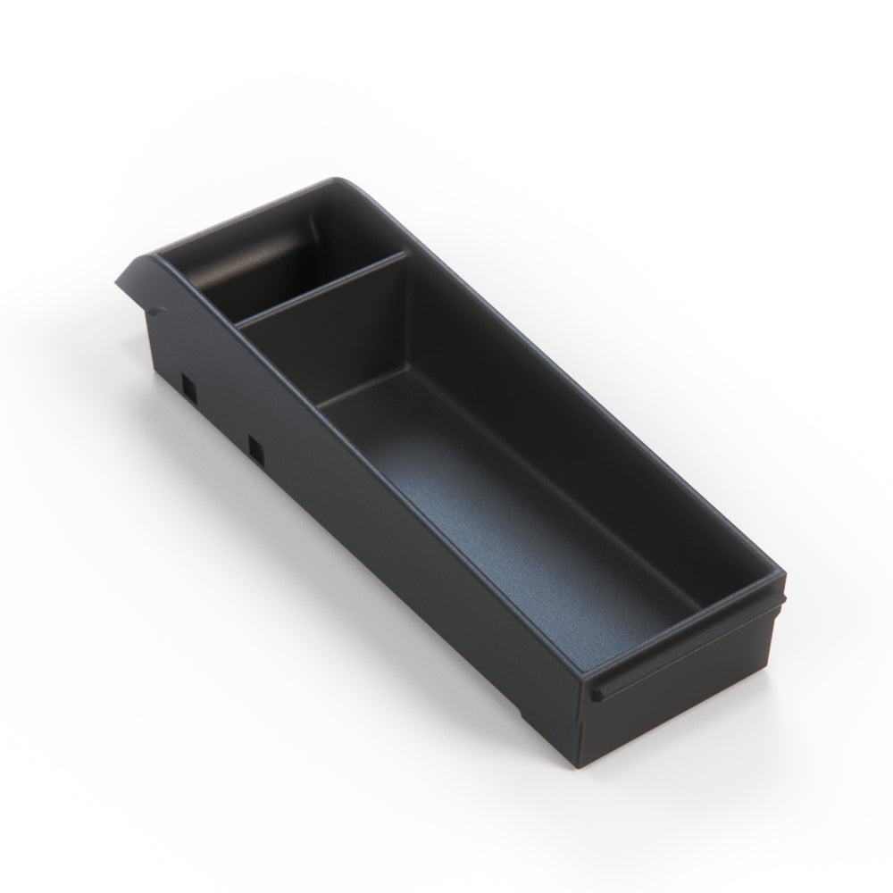Stay organized on the road with this sleek black armrest console, designed to effortlessly store and access your daily essentials while driving.