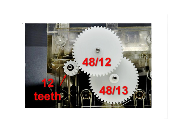Third gear: diameter: 25mm; teeth 48×13;