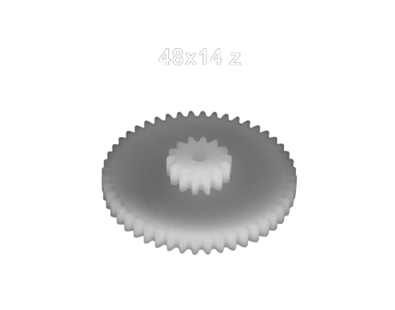 Gear: height: 9mm; diameter: 24,7mm; teeth 48/14;