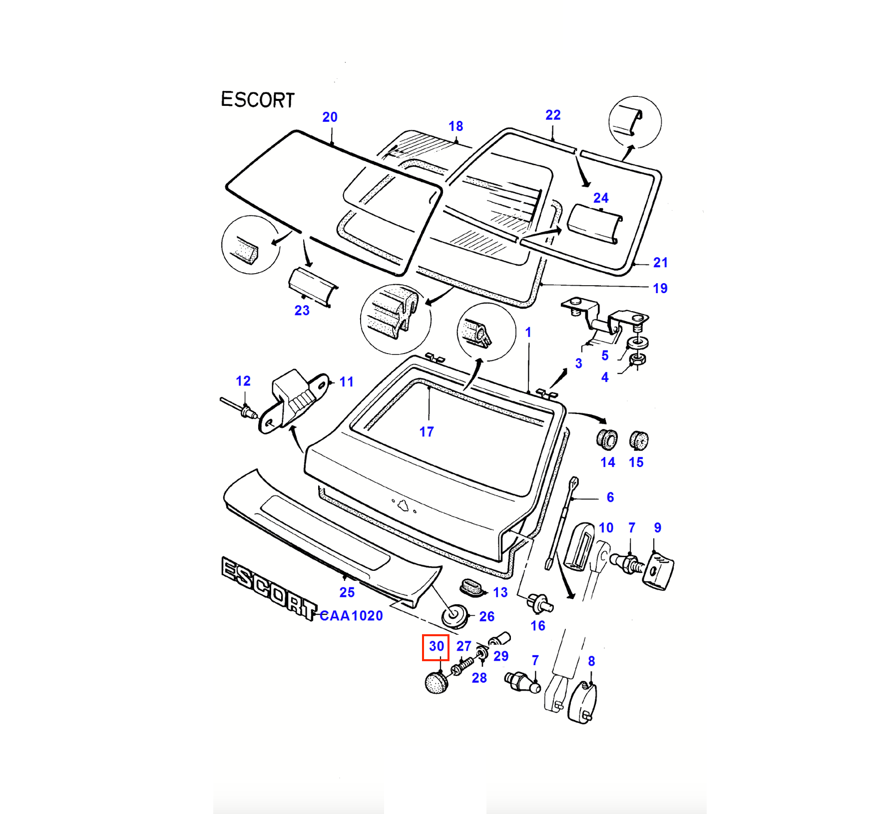 Ford Escort MK3 XR3 XR3i RS Turbo Rear Spoiler Caps Genuine Concourse Set of 4 Black 6078379
