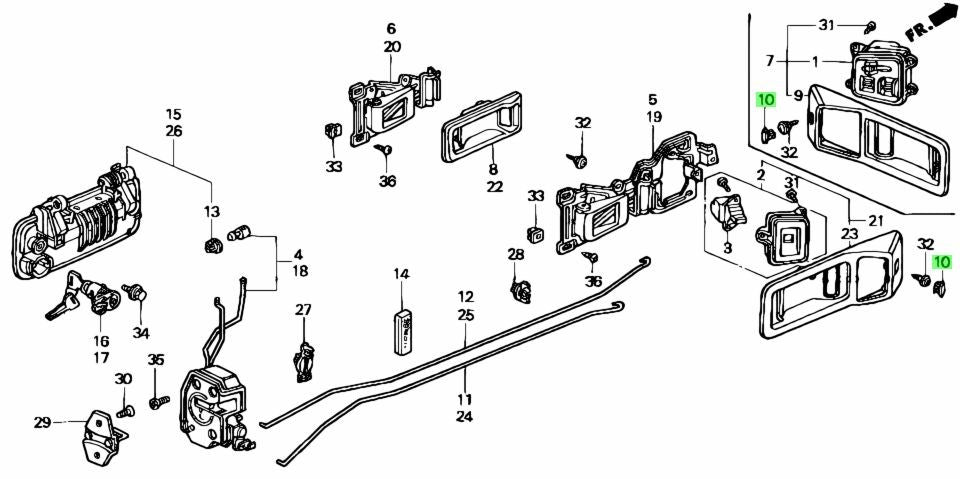 Honda Civic Set of 2 Cap Inside Handle Case Power Window Black 72127SH3J12ZG