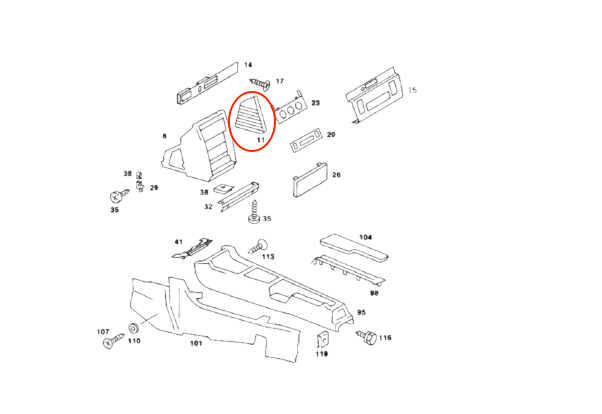 Maintain the interior of your Mercedes W201 with this center console vent grill, available for both the left and right sides. This high-quality replacement part ensures proper ventilation and a neat appearance for your vehicle's interior.