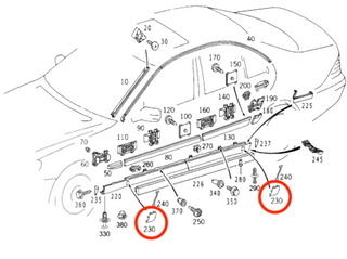 Mercedes W140 Jack Point Cover Clip Set | 4-Piece Trim | 1406980330