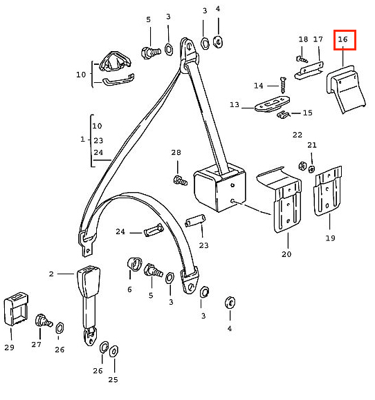Porsche 911 Seat Belt Guide Rosette 1965-1994 Black 90180313900