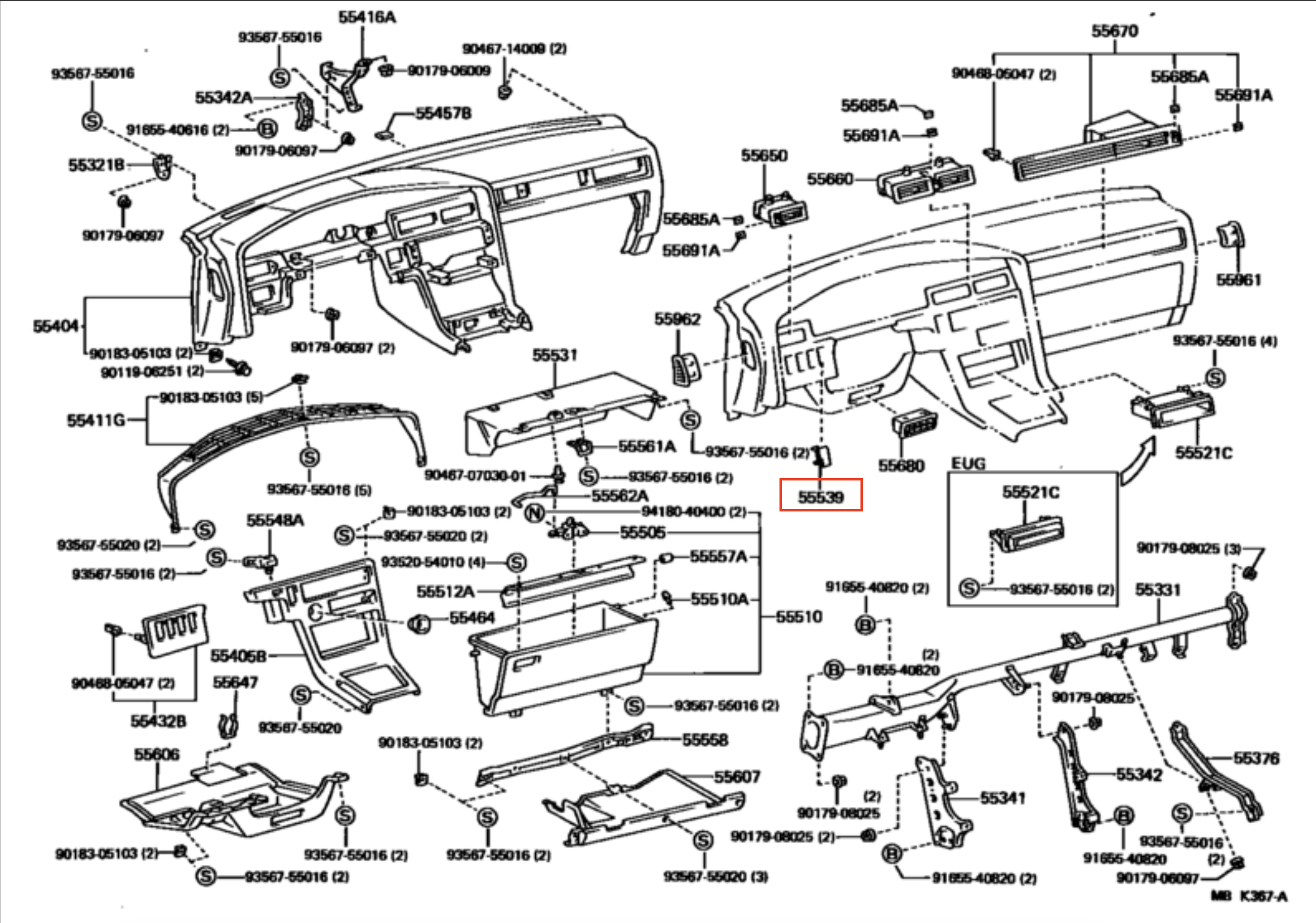Toyota part number: 55539-14040